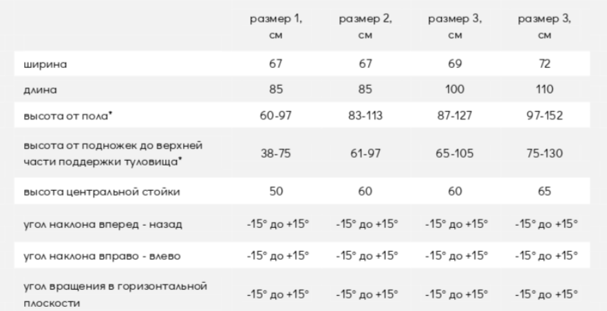 • Размер 3: рост пользователя 130–150 см, макс. вес пользователя 80 кг