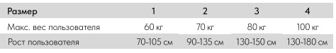 • Размер 4: рост пользователя 130–180 см, макс. вес пользователя 100 кг